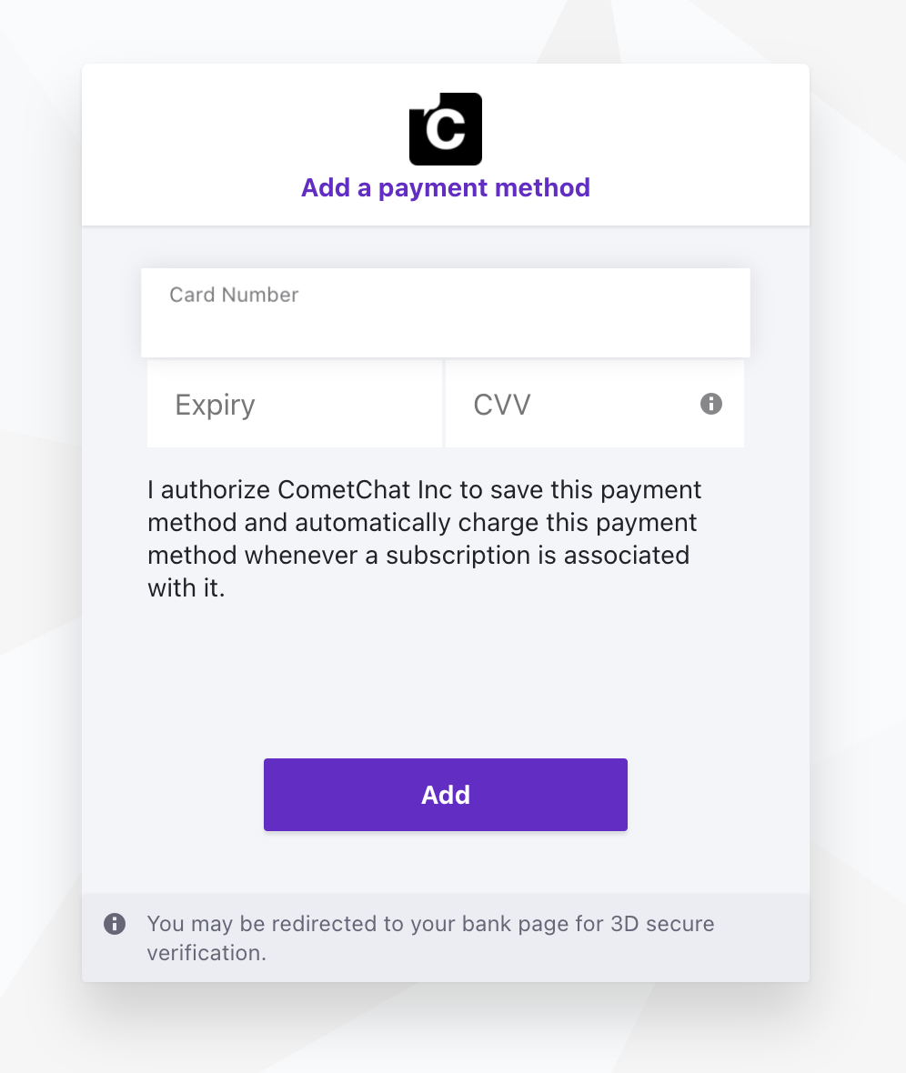 To update the payment method in your CometChat dashboard follow the instructions outlined below: